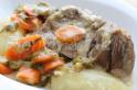 Ajouter de l’eau de façon à couvrir la viande, puis mettre l’oignon, les carottes et les poireaux, saler poivrer et laisser cuire à feux moyens (petit bouillon) pendant 1 heure 15 minutes,